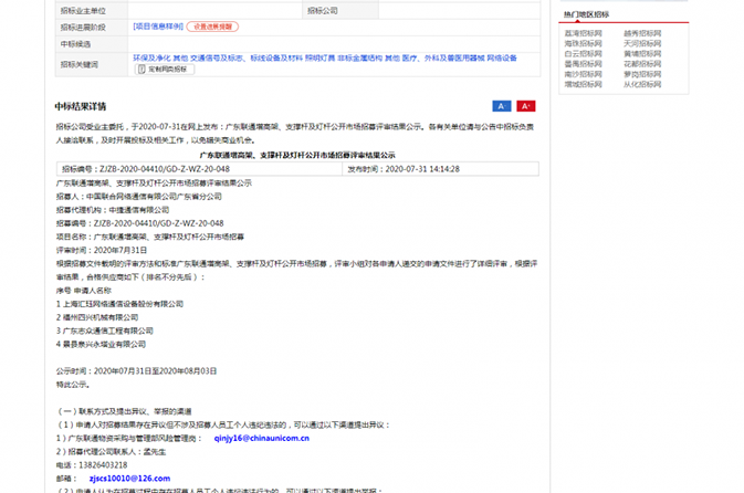 我公司于2020年7月31日入圍廣東聯(lián)通